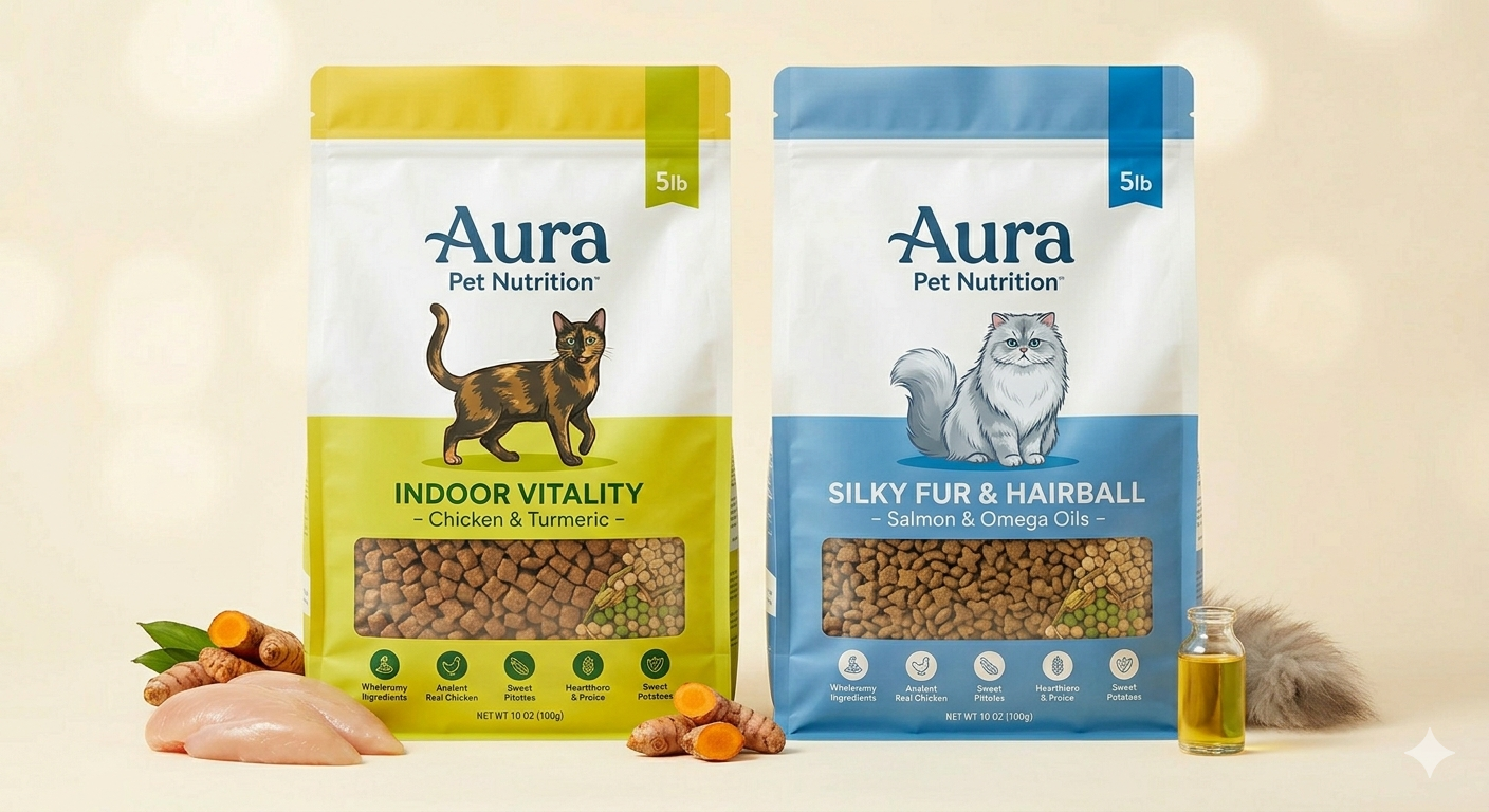 A specialty formula targeting coat appearance and the mechanical management of hairballs. This specialized recipe uses salmon and flaxseed to deliver intense levels of Omega-3 and Omega-6 fatty acids, specifically targeting healthy skin and a lustrous coat. It includes a proprietary blend of natural fibers (like miscanthus grass and beet pulp) that gently move swallowed hair through the digestive tract, reducing hairball incidents.